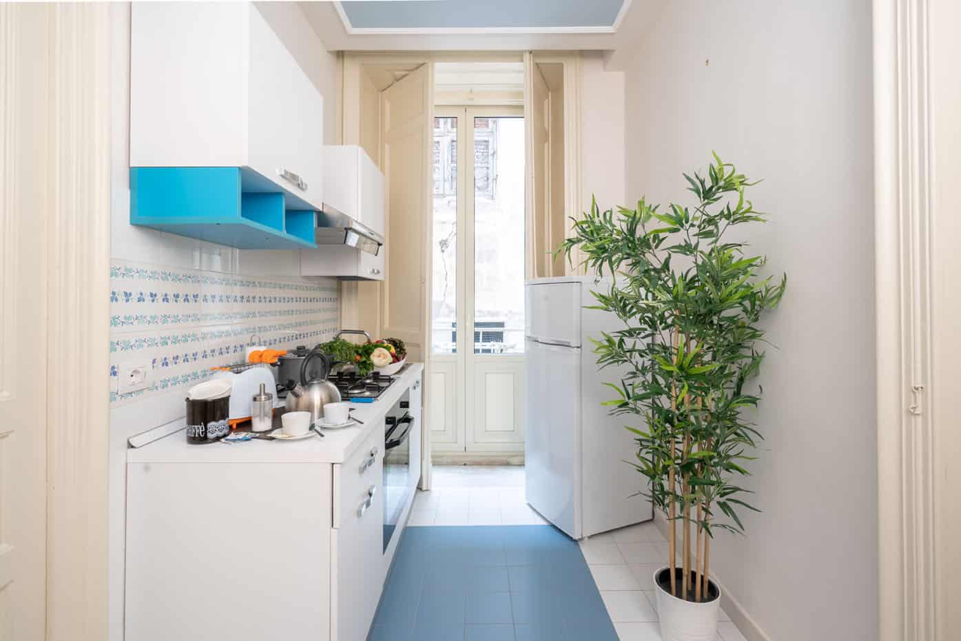 La cucina, di ampie dimensioni, è completamente accessoriata e vi permetterà di preparare i piatti tipici della tradizione siciliana. Un riservato salotto completa questo appartamento.